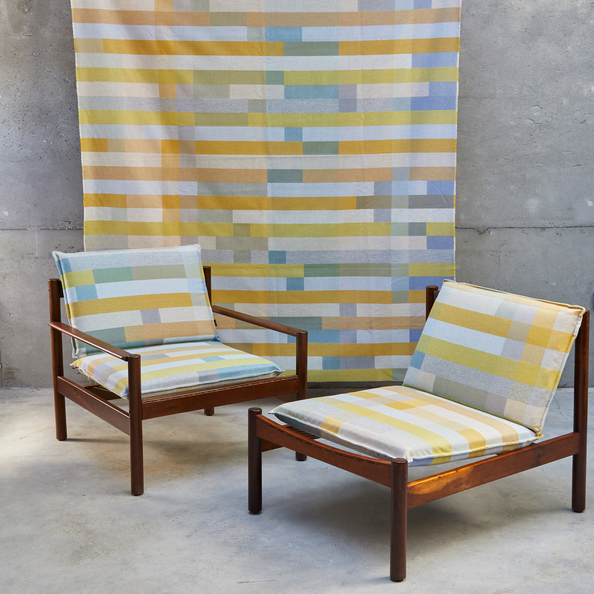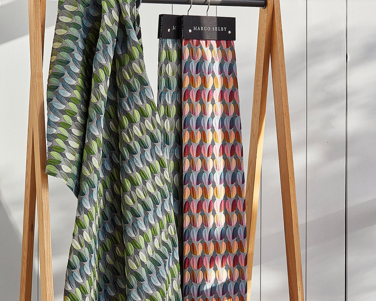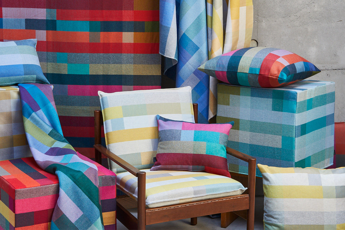 Our fabric portfolio showcases the full range of weaving techniques we use in our studio. From bold upholstery textiles to delicate soft furnishings, each fabric is crafted with colour, texture and precision. We offer a selection of in stock fabrics by the metre. If you are interested in archive fabrics, a larger commission, trade project or collaboration, please feel free to email us, info@margoselby.com