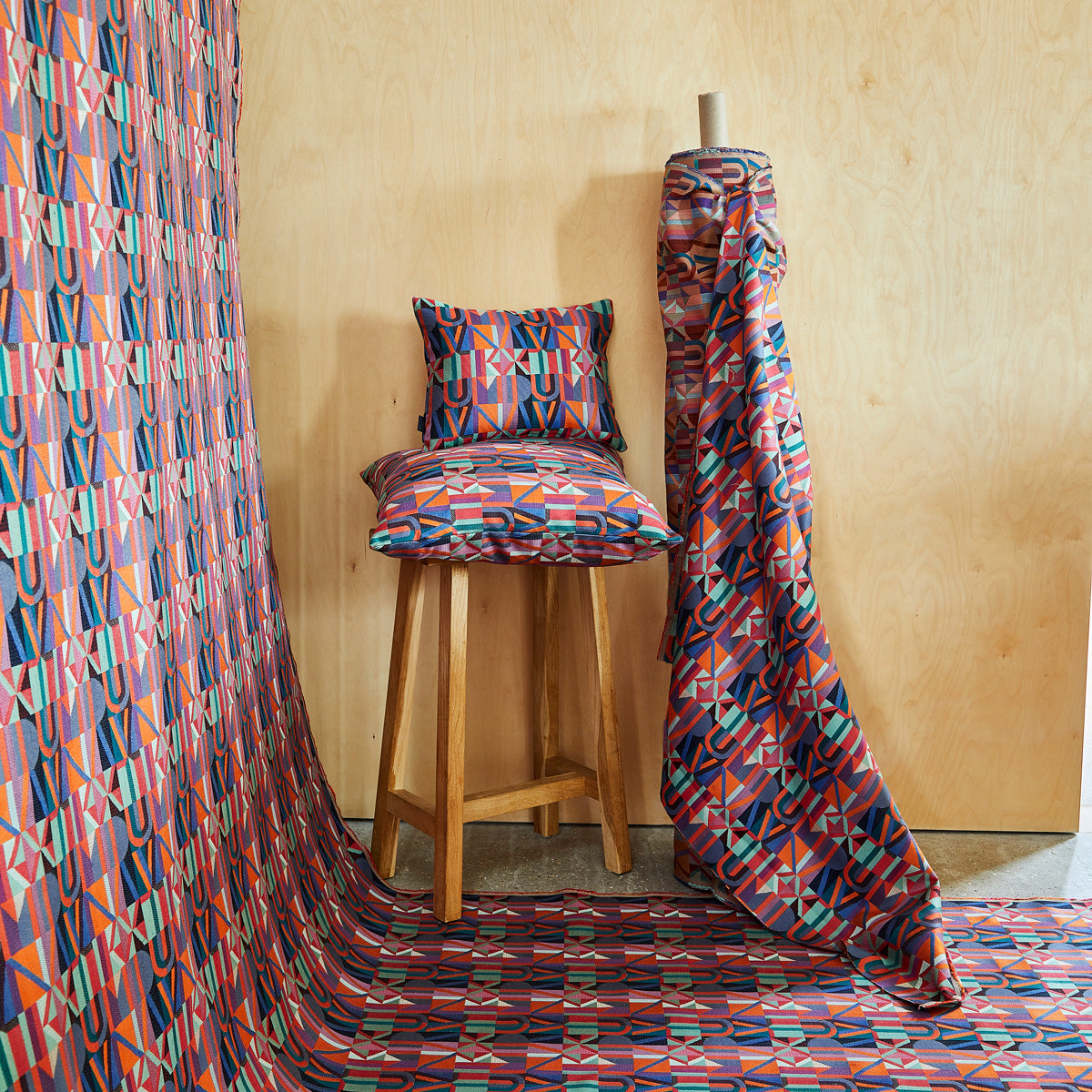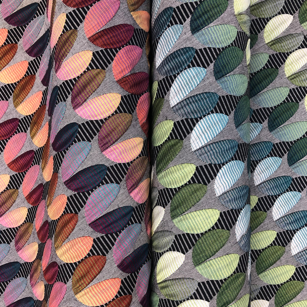 Our Jacquard fabrics explore colour, pattern, and structure through specialist weaving techniques, from smooth satin weaves and matte finishes to textured silk constructions and robust equal warp and weft weaves. Each fabric offers a distinct balance of surface, handle, and durability within a richly woven structure.