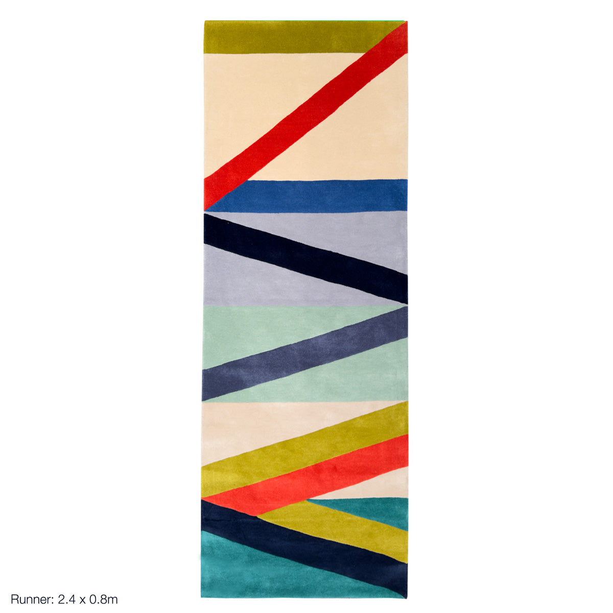 The Bala rug is a playful, large scale linear design in a bright colourway. This statement rug draws on the studio’s continued fascination with typography - experimenting with letter forms to create an abstract composition.