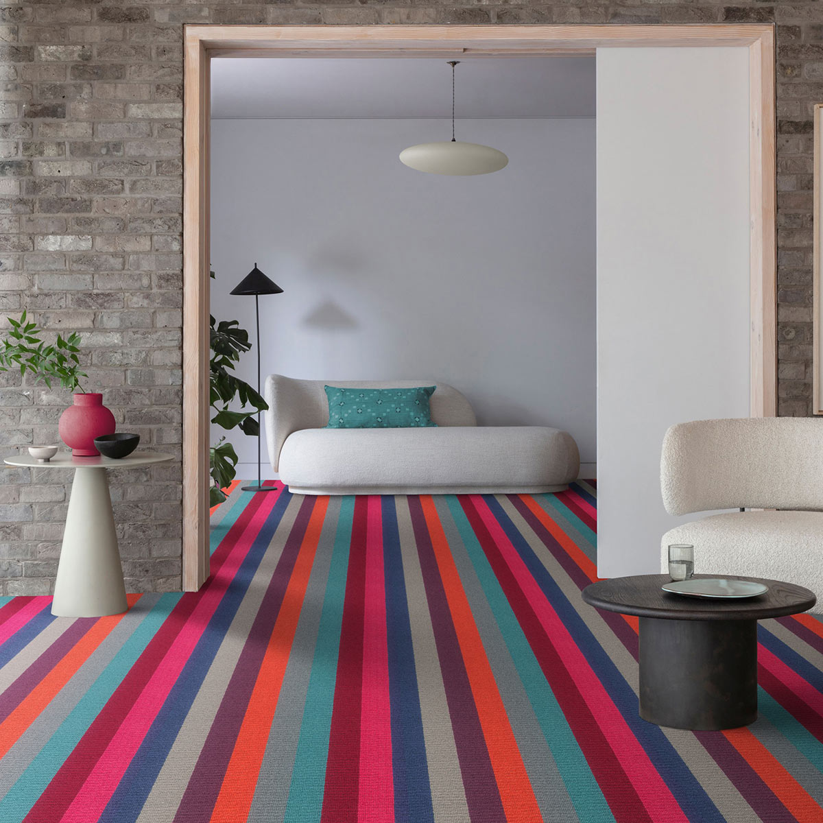 Continuing her long-standing design partnership with British flooring specialist Alternative Flooring, Margo has designed three new bold, dynamic designs that bring a contemporary twist to classic stripes, in jewel-toned colourways.