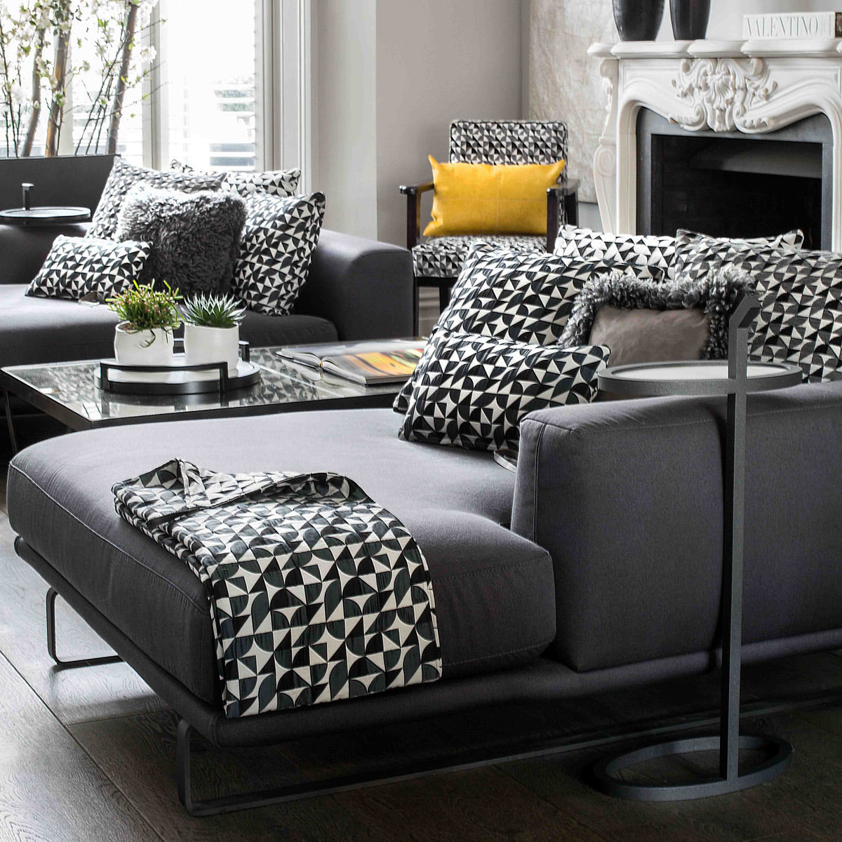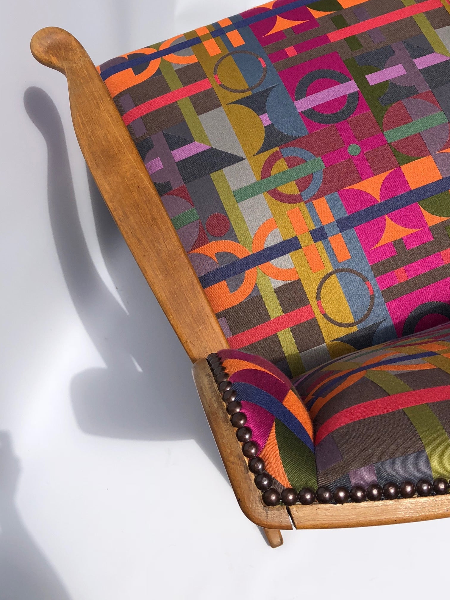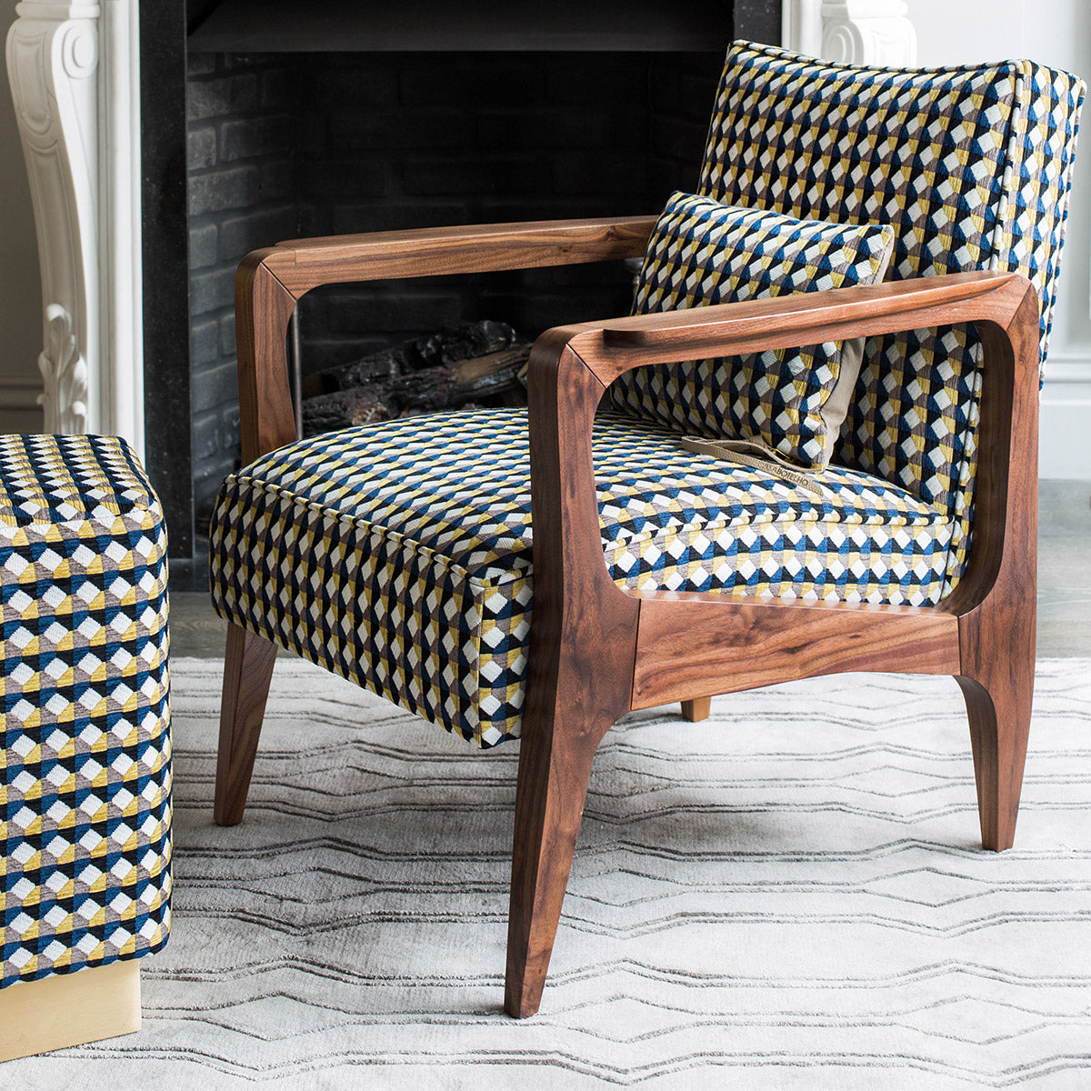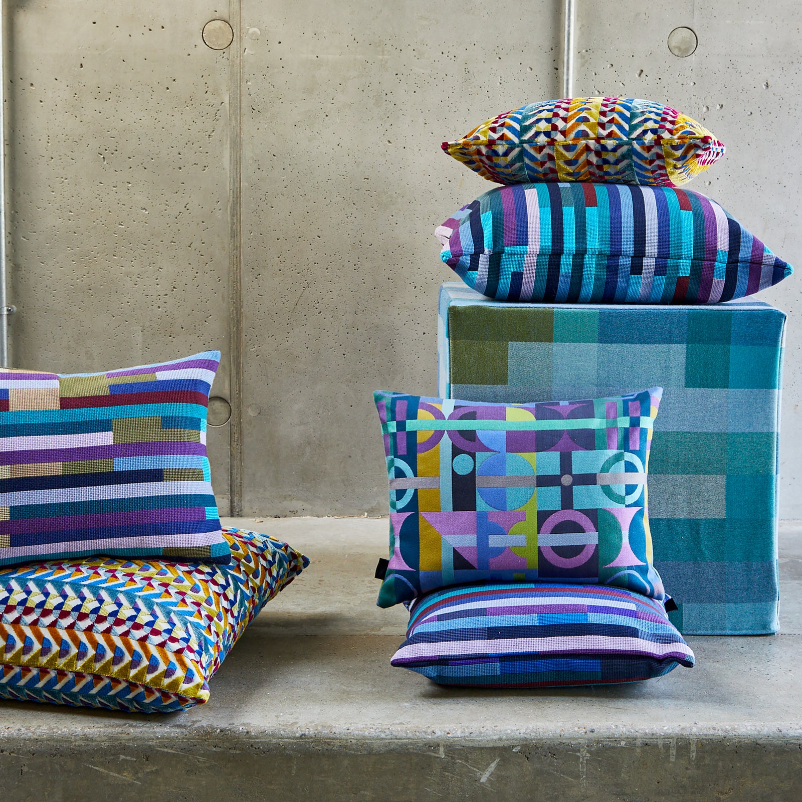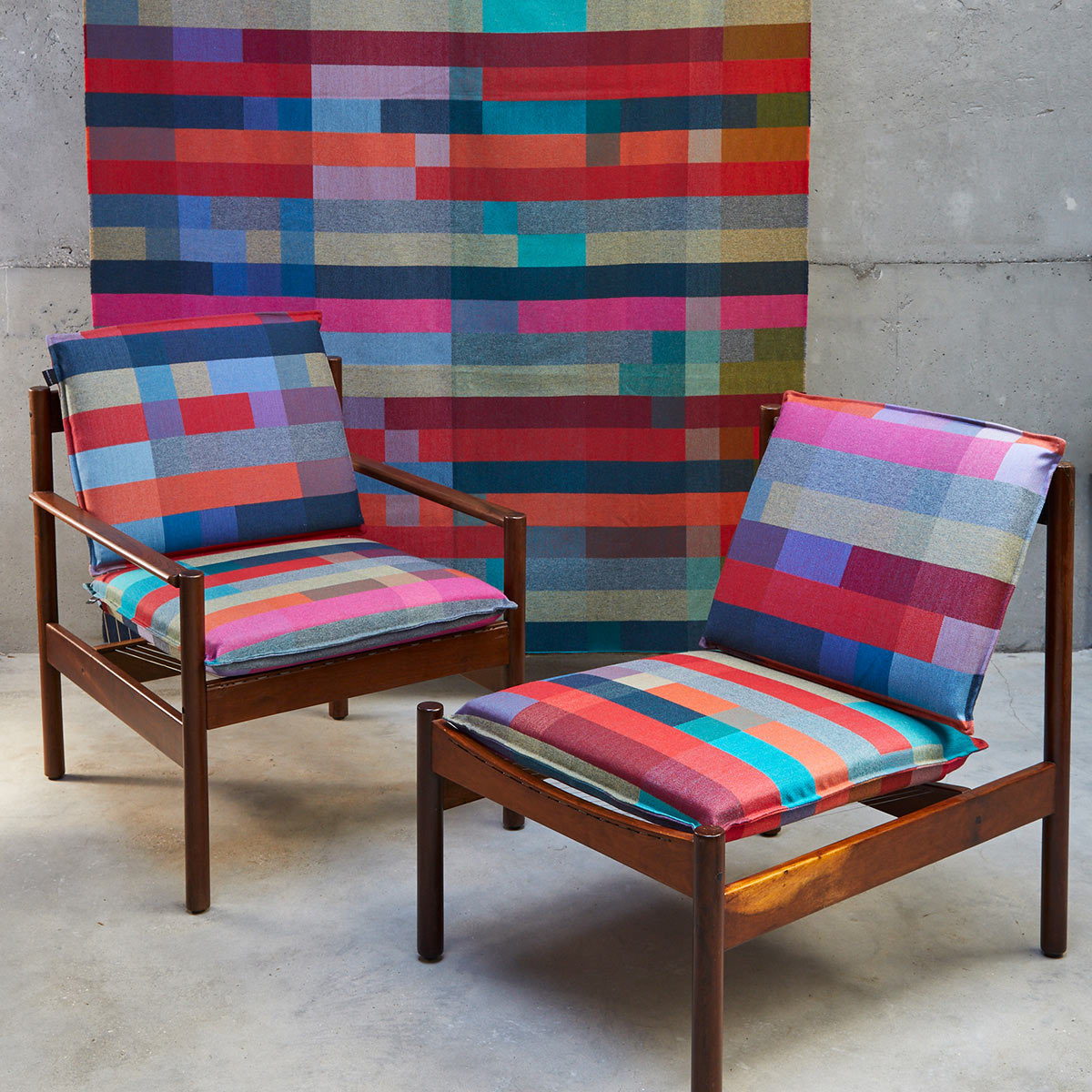 Needlepoint Jacquard Fabric, inspired by Margo’s handwoven artworks, is focused on colour and mathematics, with equal warp and weft. It guarantees solid colour quality and its robust, needlepoint-like texture makes it ideal for upholstery, curtains, and soft furnishings.