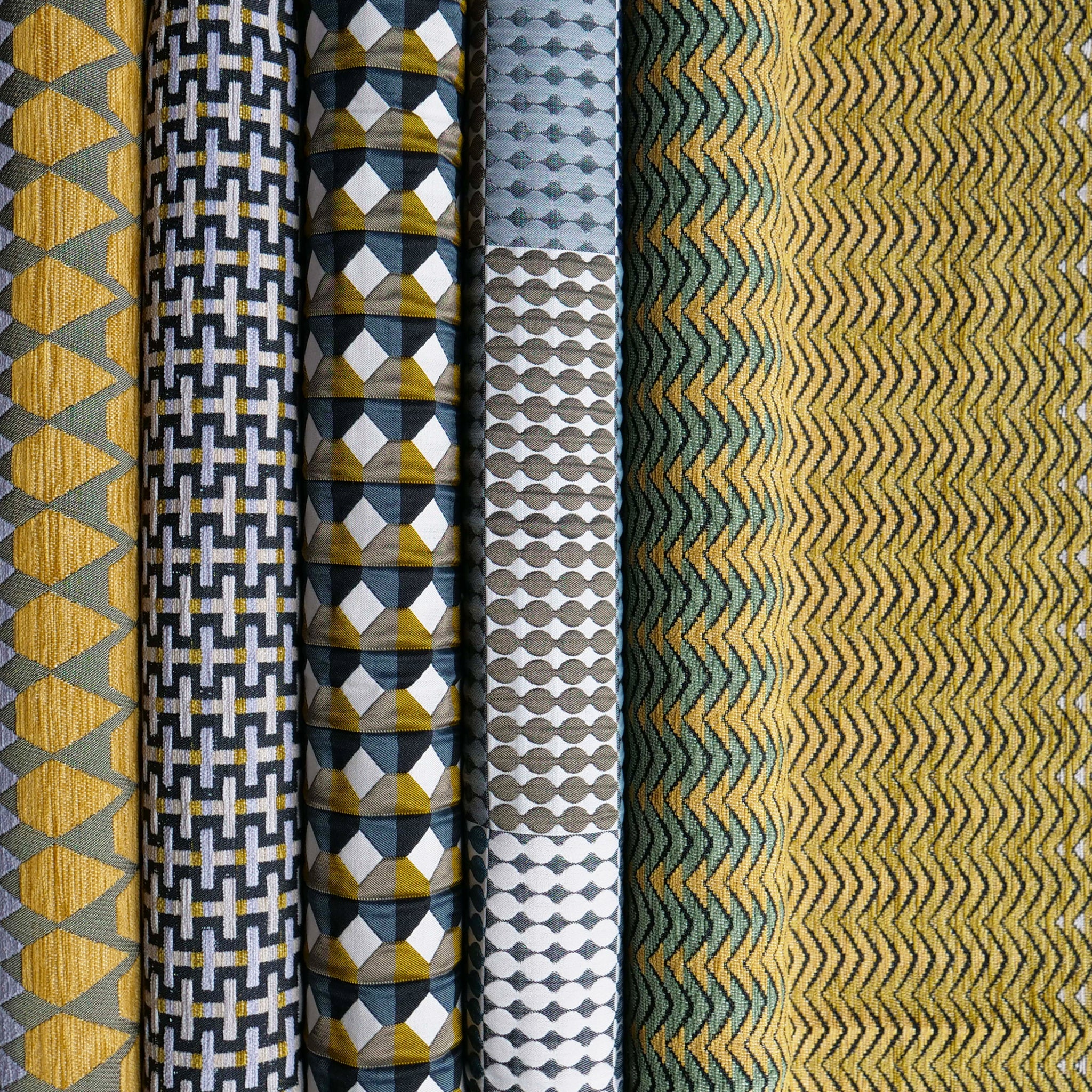 Jacquard fabrics with a matte finish infuse vibrant colour patterns into your upholstery, curtain, and soft furnishing projects.