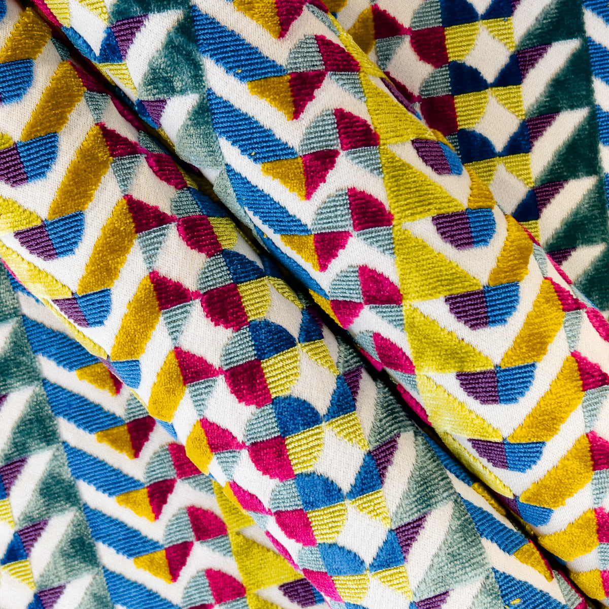 Highly textured cloth with varying velvet piles, combining the plushness of velvet with the intricate designs achieved through jacquard weaving. Ideal for upholstery, curtains, and soft furnishings.