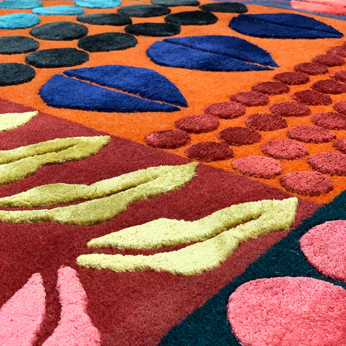 We work in long-term partnership with a select group of the world’s best rug makers, and use the finest quality materials and techniques including hand-knotting, hand-tufting and flatweave methods. Margo’s technical expertise in weaving is central to each design development, in tandem with her sensibility for colour and form.