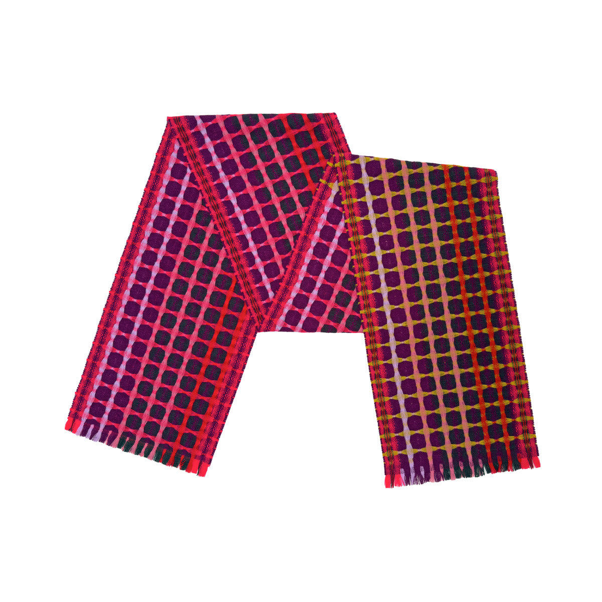 Derived from handwoven samples developed in the Margo Selby studio and woven at a traditional Scottish mill that has been in operation for over 200 years, this scarf showcases the combination of studio innovation and time-honoured manufacturing expertise. The deflected double weave technique celebrates both the creative possibilities and inherent constraints of the loom, resulting in a piece that is as much about the process as it is about the final design.